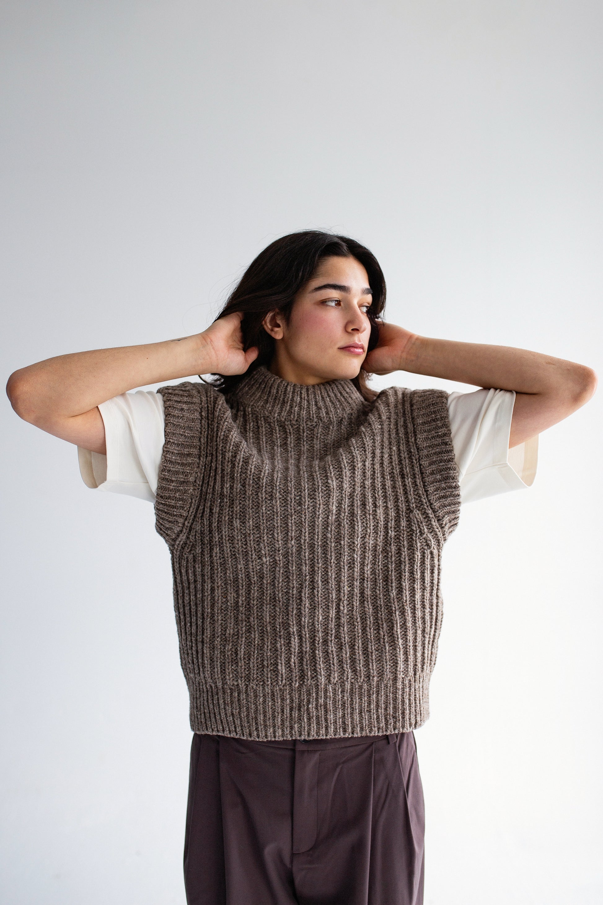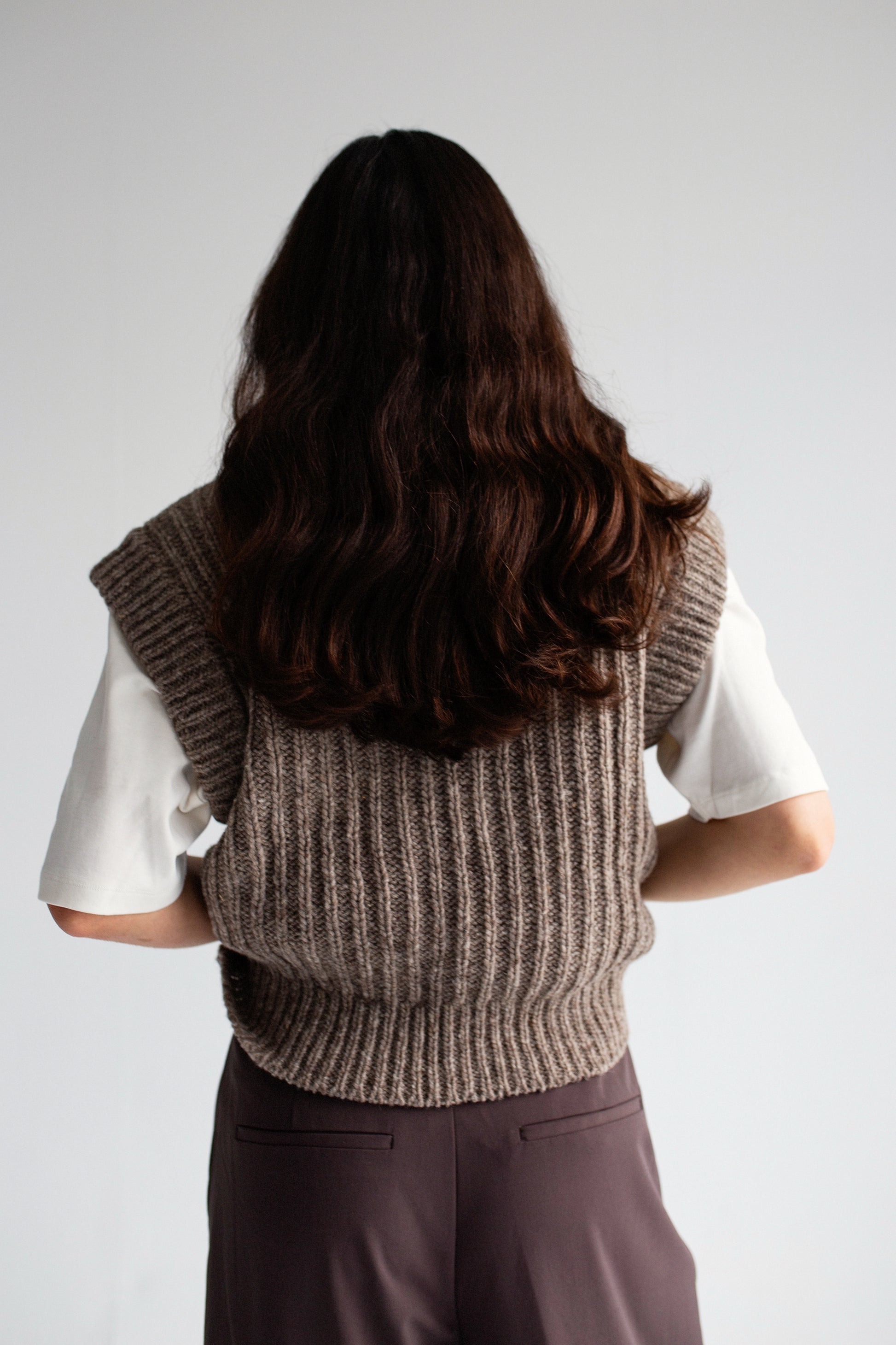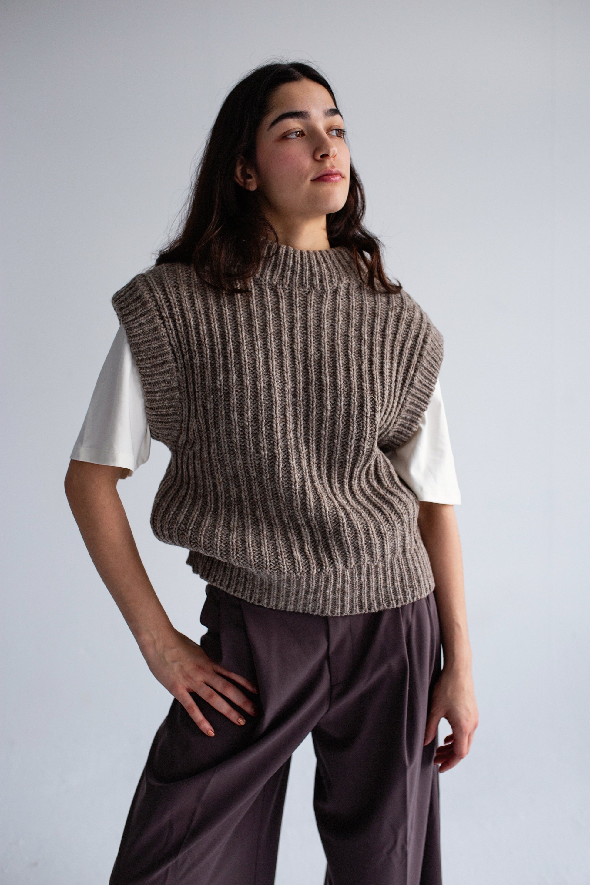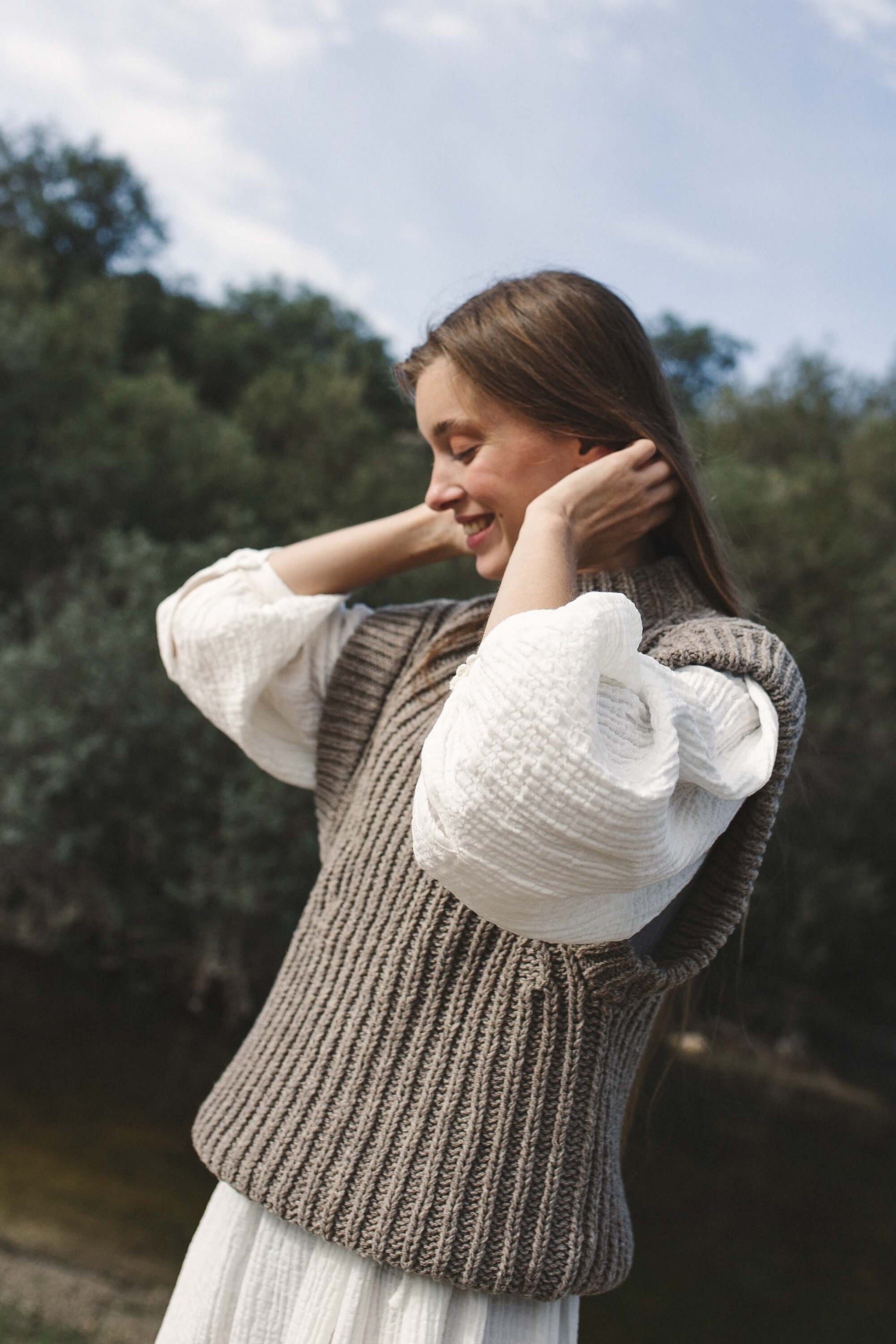 Atemporal y atemporal, Cris Vest es un tejido de punto de lana cardada de 1 cabo esponjoso, cálido y reconfortante para los días frescos de otoño, los inviernos fríos... Sobre vestidos, blusas, camisas, camisetas... Tan versátil y combinable.