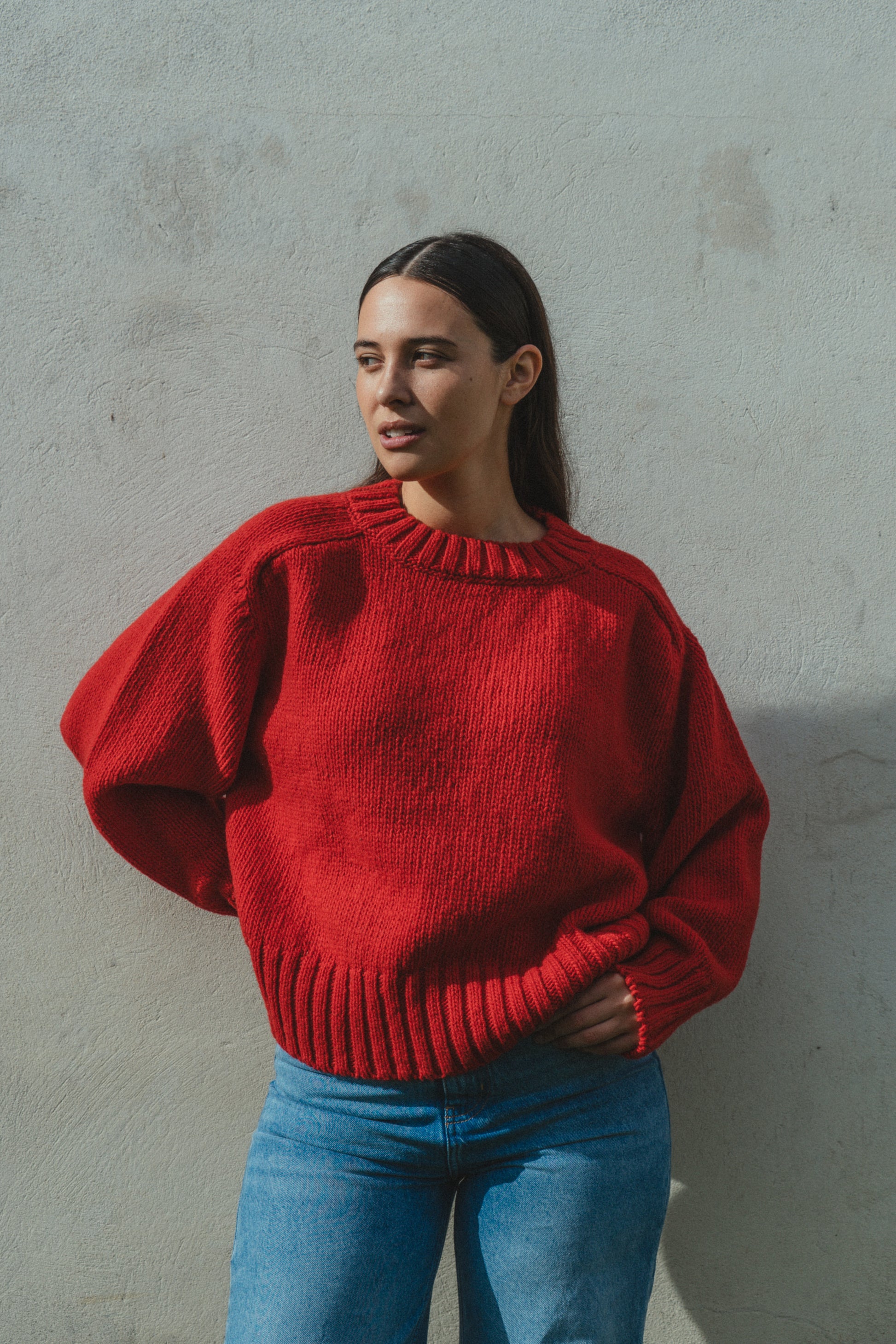 Boxy effortless fit, smart slightly wide round neck for a classic not-so-classic touch, Mapoula sweater has Floca’s distinctive combined sleeve: saddle shoulder at front, raglan sleeve at the back. An easy and elevated basic piece for all seasons.