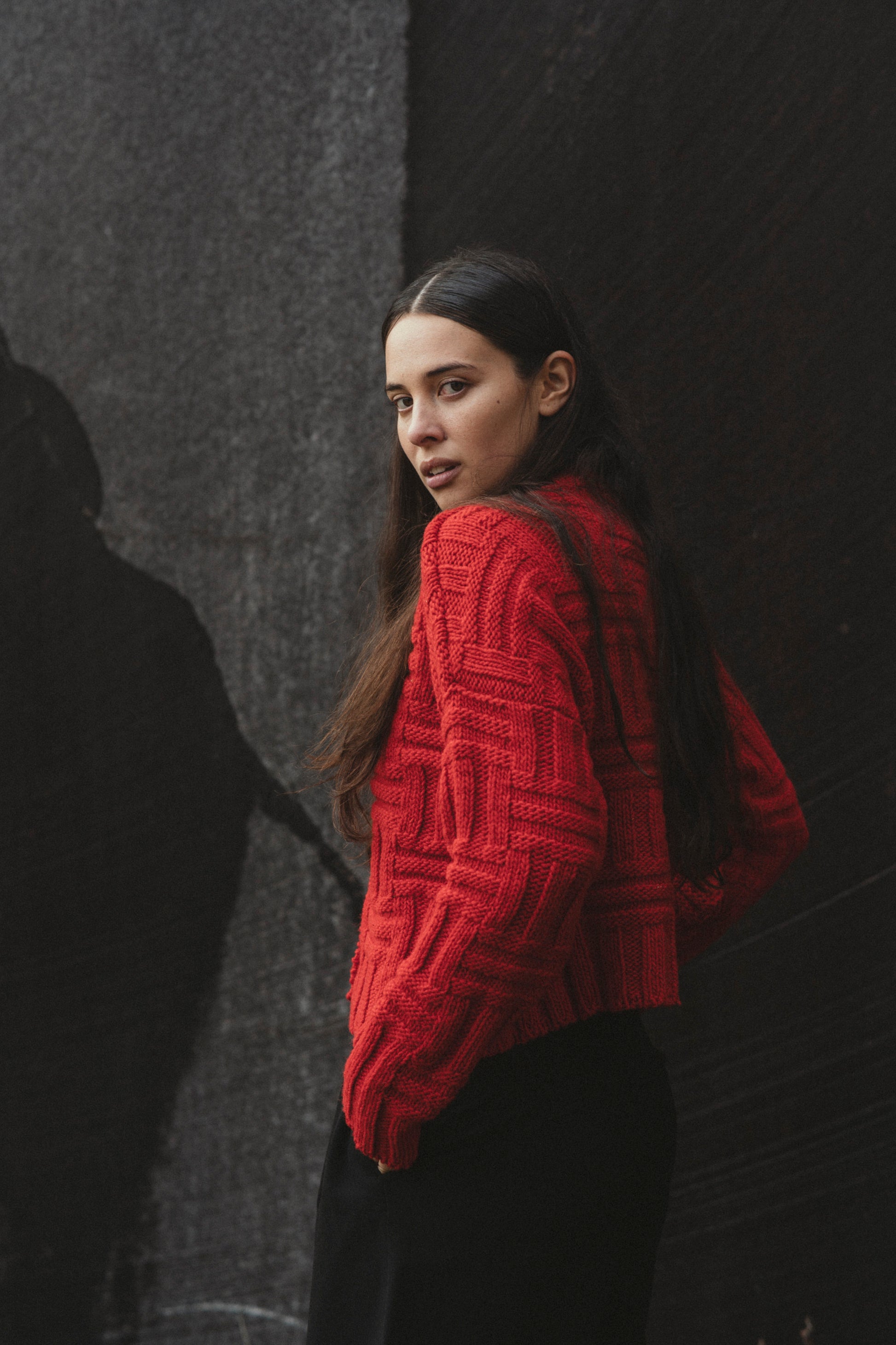 Inspired by the traditional galician basketry weaving craft with wood strips, this is a lightweight cardigan knitted in enlarged basket stitch. Roomy, relaxed shape and long sleeves for easy comfort throughout the seasons.