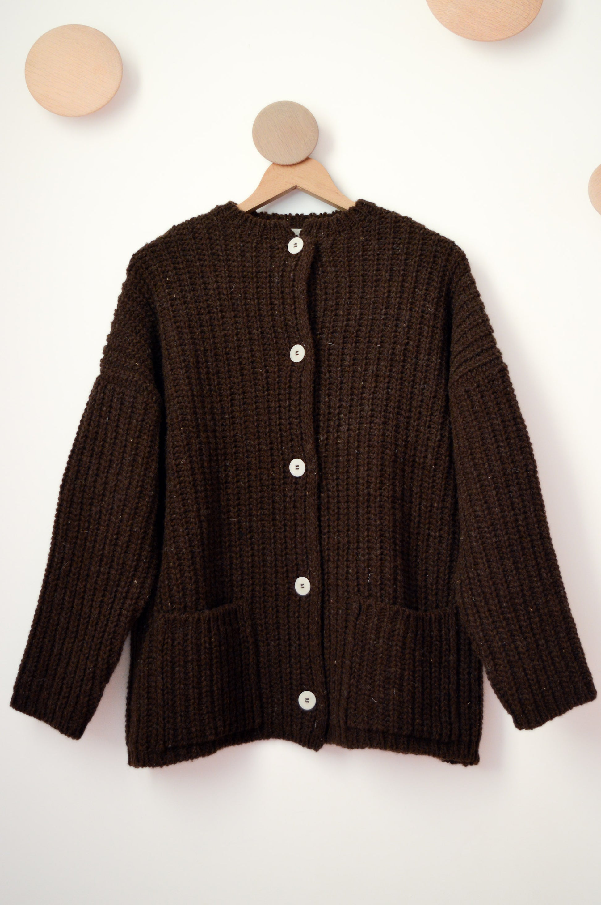 Inspired by one favourite cardigan I used to cherish as a kid, Rula is an effortless, comfortable piece. With its classic straight shape, knitted in a textured fisherman rib, with two little front pockets, crew neck and dropped shoulders.